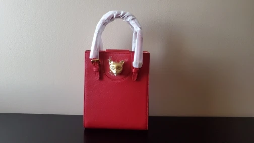 Mini tote distinguished bold cat emblem creating modern visual contrast on split leather. Rich texture impeccable rigid structure box shape subtly accentuating luxury artisanal finishes.
